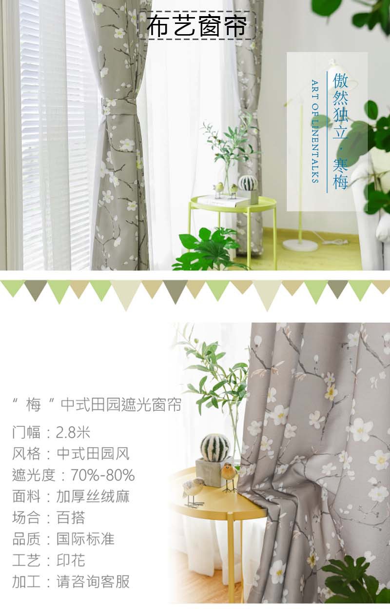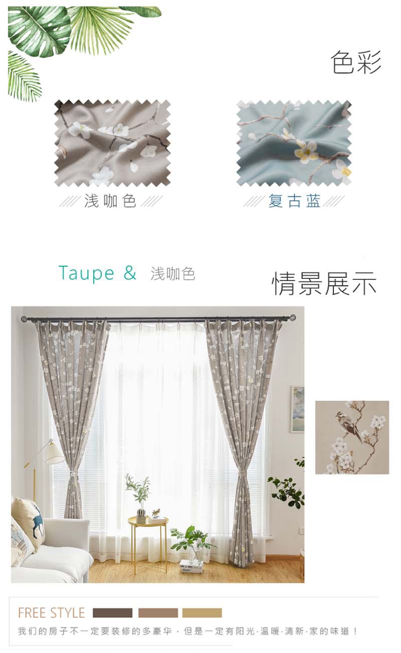 材質(zhì):加厚絲絨麻 工藝:印花 尺寸:2.8米 功能:遮光、透氣、溫馨浪漫 適用范圍:臥室、酒店客房
