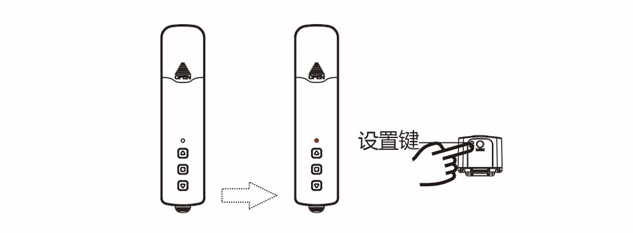 ◆長按電機(jī)【設(shè)置鍵】,直到電機(jī)【指示燈】紅色閃一下,松手;
