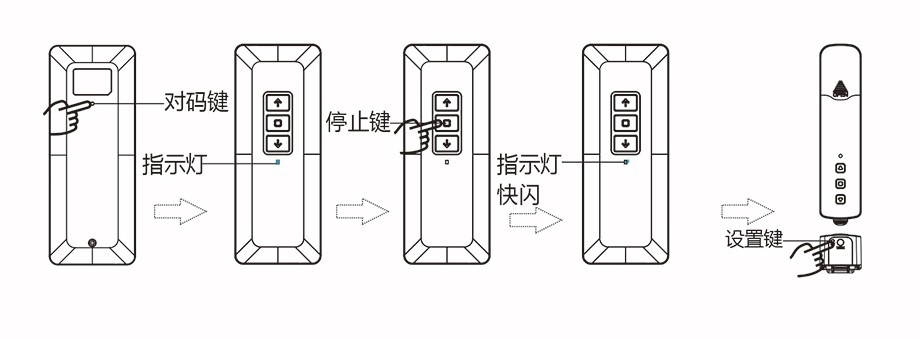 備注:連續(xù)點按電機(jī)【設(shè)置鍵】兩次的規(guī)定:點按第一次,當(dāng) 電機(jī)【指示燈】閃一次紅燈后, 再按第二次。
