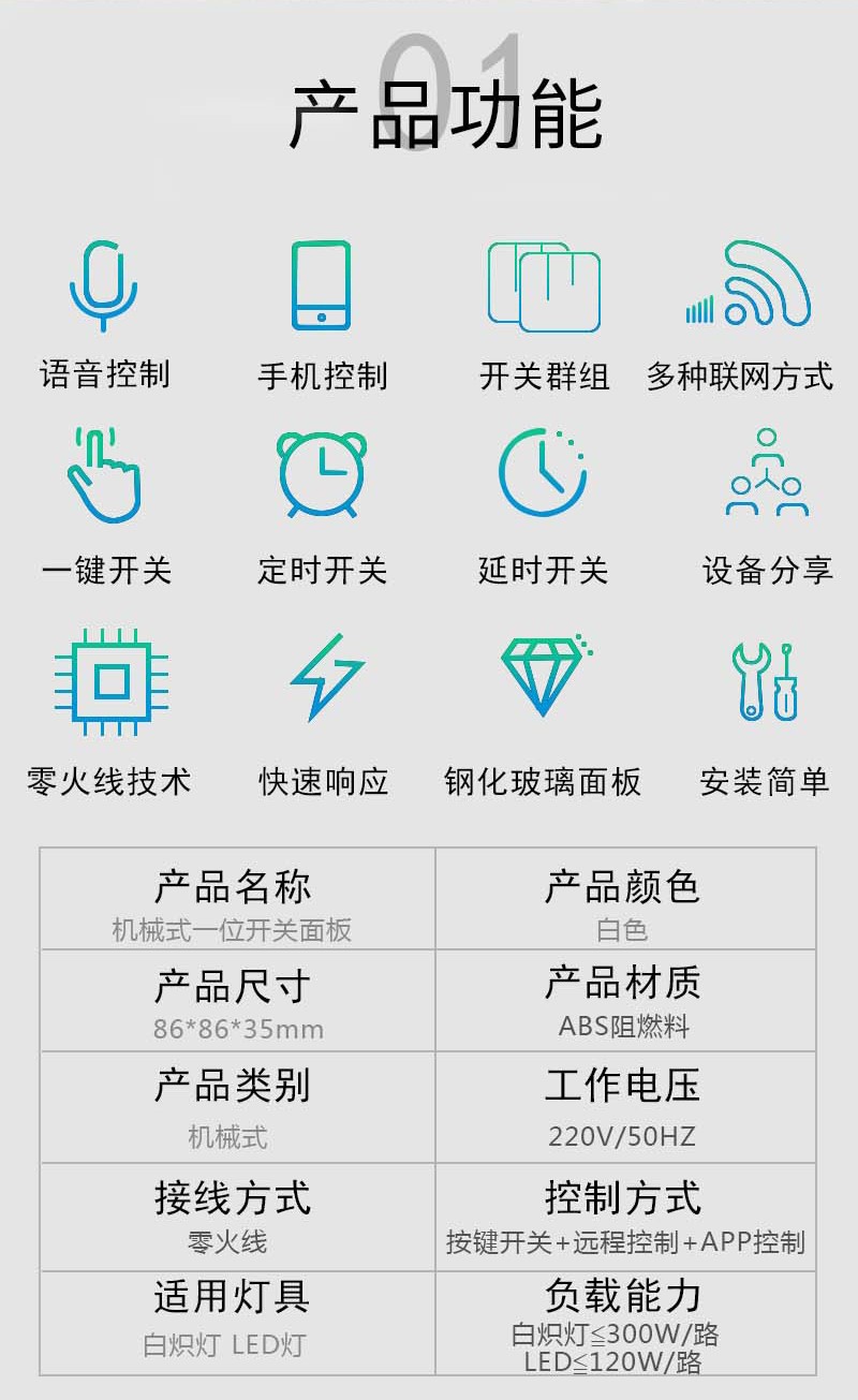 智能觸控機(jī)械式一位開關(guān)面板_百仕誠