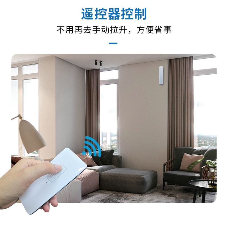 此產品適用于拉珠卷簾,可以把傳統(tǒng)的拉珠卷簾改變?yōu)橹悄茈妱哟昂煟惭b簡單,操作方便。安裝后可通過遙控器、語音、手機APP等控制窗簾升降。