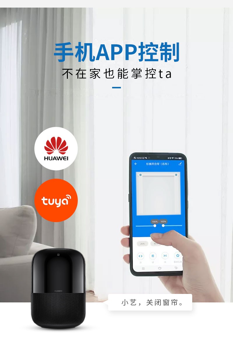 無線窗簾WIFI語(yǔ)音控制神器涂鴉智能電動(dòng)窗簾伴侶羅馬桿窗簾助力器