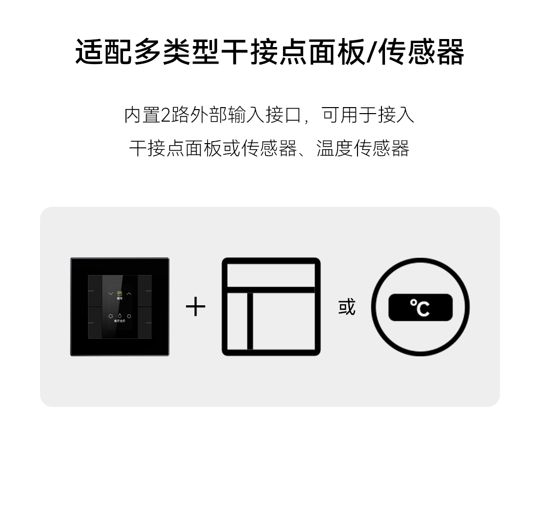 內(nèi)置2路外部輸入接口,可用于接入干接點面板或傳感器、溫度傳感器