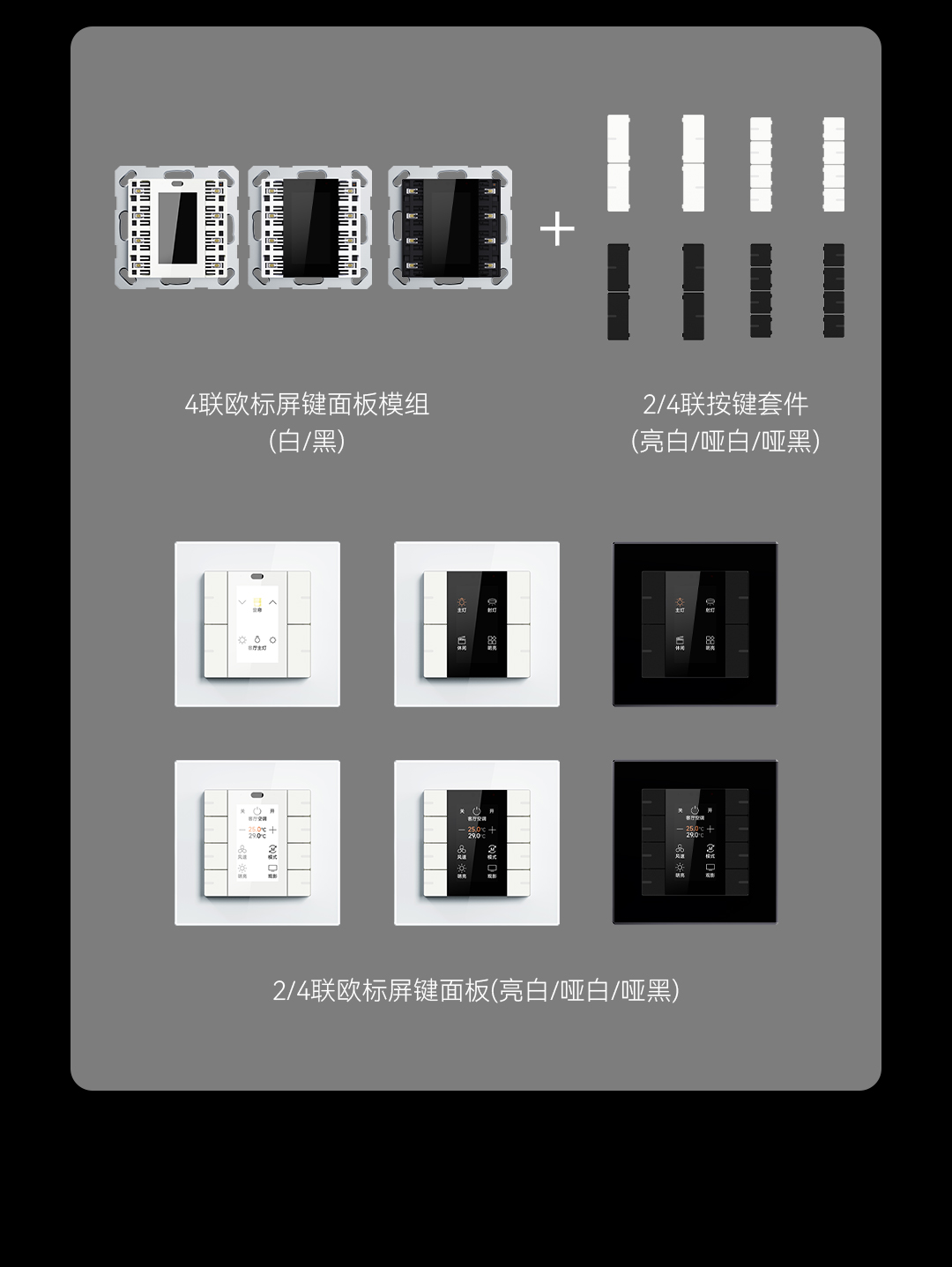 2/4聯(lián)歐標屏鍵面板(亮白/啞白/啞黑)
