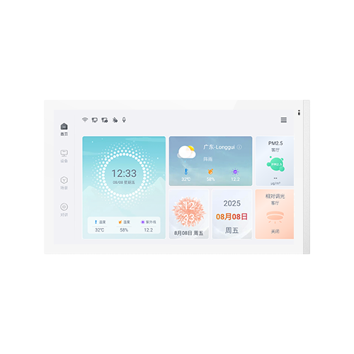 GVS S15智慧屏是一款集KNX控制和SIP可視對講于一體的支持KNX數(shù)據安全的多功能智能屏。采用15.6寸彩色IPS電容觸摸屏,分辨率1920x1080。在智能家居應用場合可實現(xiàn)多達240個KNX設備的控制和顯示,包括燈光、窗簾、空調,溫控,背景音樂,地暖、新風、空氣質量傳感器和能源數(shù)據,以及多達30個場景控制。產品提供雙網口,其中ETH0用于可視對講,支持標準48VPOE供電;ETH1用于外網。SIP對講可與其他標準的SIP系統(tǒng)設備互聯(lián)互通,實現(xiàn)監(jiān)控、對講、防區(qū)等功能。額外地,還支持定時、人本照明、溫濕度檢測、靠近感應等靈活豐富的輔助功能。