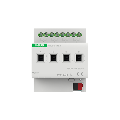 四路帶電流檢測(cè)開關(guān)執(zhí)行器主要應(yīng)用在樓宇控制系統(tǒng)中,通過 EIB/ KNX 總線和 其他總線設(shè)備一起安裝成為系統(tǒng),主要用于控制開關(guān)負(fù)載。開關(guān)執(zhí)行器可以開關(guān) 4 路到 12 路獨(dú)立電氣交流負(fù)載或三相負(fù)載。每個(gè)開關(guān)執(zhí)行器輸出的最大負(fù)載電 流為 16 A,且都可手動(dòng)開啟或關(guān)閉,其開關(guān)狀態(tài)都可看得見。