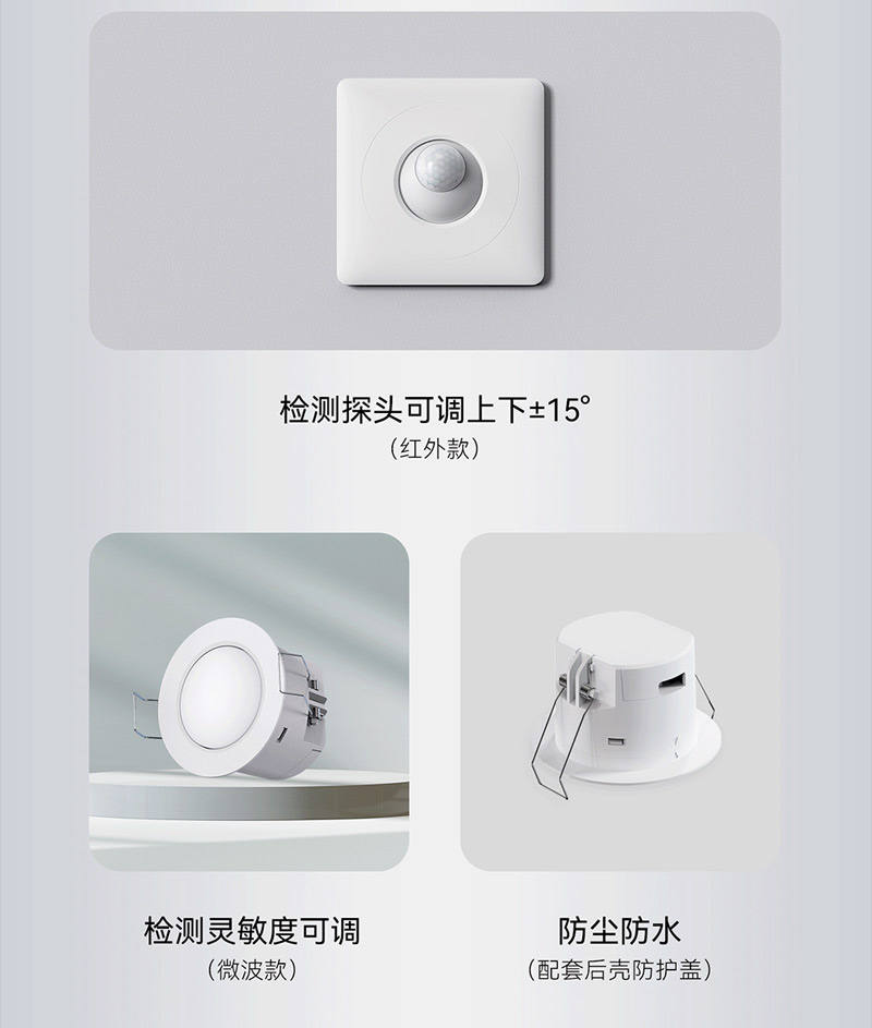 KNX微波存在傳感器采用精度更高的24G微波傳感技術(shù),可檢測移動、微動、存在等多種人體狀態(tài)。