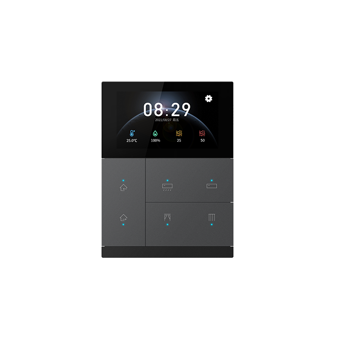 KNX安全3聯(lián)6鍵智能觸摸面板不僅支持屏幕觸控操作,而且支持按鍵操作,帶來雙重體驗感的同時,也集成了照明、窗簾、場景、溫控、空調(diào)、新風(fēng)系統(tǒng)、背景音樂、RGB和RGBW調(diào)色、色溫控制等功能,及設(shè)備狀態(tài)顯示,并且內(nèi)置溫度和濕度傳感器,可檢測本地環(huán)境溫度和濕度,滿足大部分的日常應(yīng)用。