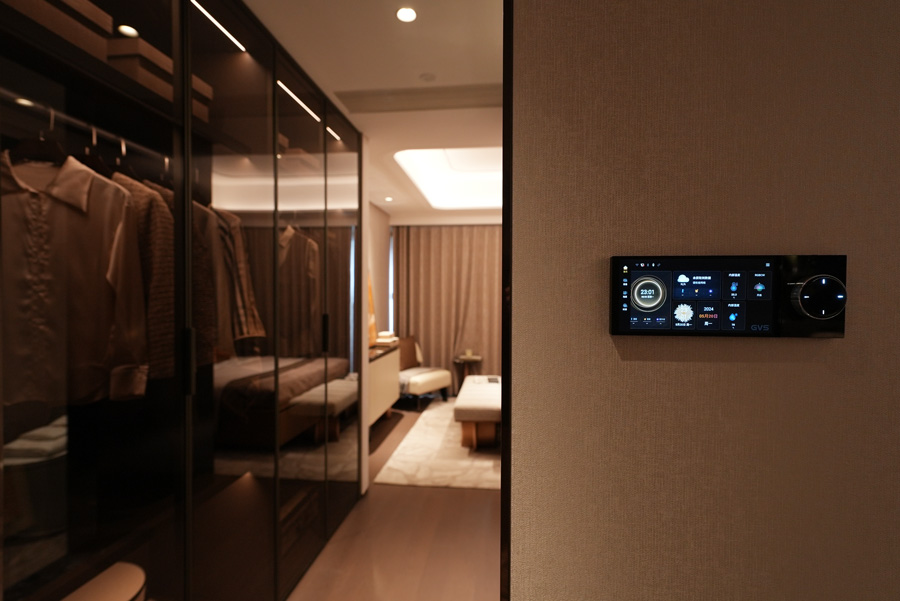 為匹配住宅的高奢屬性和不同的家裝風(fēng)格,GVS汲取中西美學(xué)的前沿設(shè)計(jì),為外灘壹號(hào)院專屬定制了智能面板,無論是顏色、鐳雕及親膚感金屬的選材都完美共生于墻面之上,呼應(yīng)了整個(gè)住宅的尊貴雅致基調(diào)。