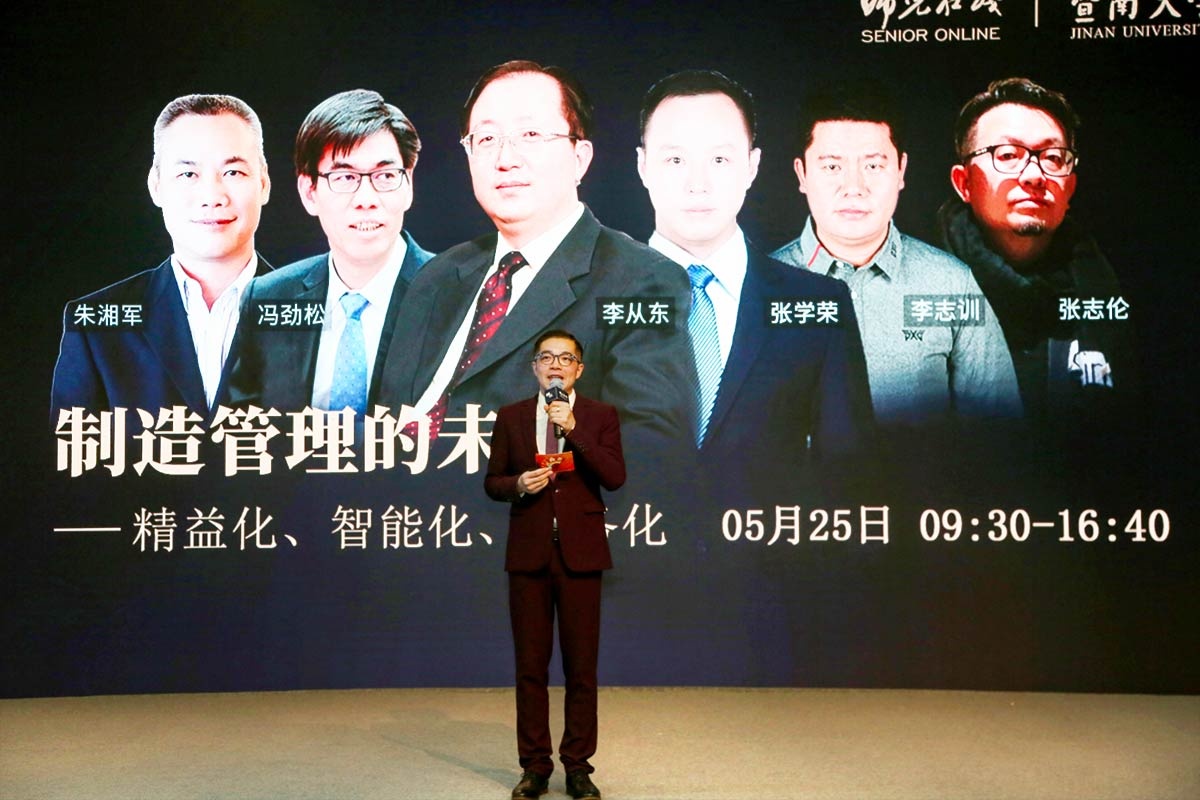 5 月25 日,師兄在線季度公開課在廣州暨南大學(xué)管理學(xué)院隆重舉行,由中國機械工程學(xué)會工業(yè)工程分會副理事長、原暨南大學(xué)管理學(xué)院院長、原天津大學(xué)工業(yè)工程系主任李從東教授領(lǐng)銜,與五位制造管理領(lǐng)域的精英企業(yè)家同臺分享,一起探索中國制造業(yè)的未來,國家級高新技術(shù)企業(yè)GVS視聲創(chuàng)始人朱湘軍董事長受邀開講此次公開課。