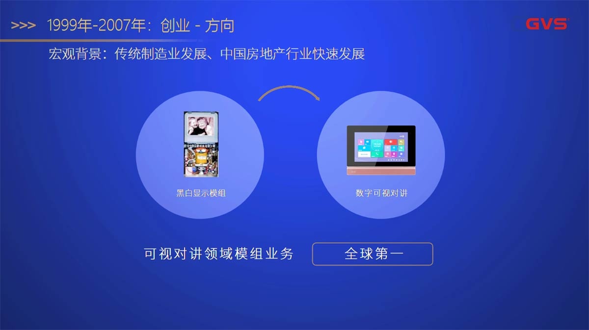 在初心的引導(dǎo)之下,時間回到創(chuàng)業(yè)之初的1999年,當(dāng)時全球僅有兩家扁平顯像管生產(chǎn)商,分別是三星和索尼,他們的產(chǎn)品價格貴,定制時間長。為了突破國外的技術(shù)壟斷,GVS視聲聯(lián)合上下游產(chǎn)業(yè)鏈,開發(fā)出領(lǐng)先的國產(chǎn)扁平顯像管,不僅質(zhì)量可靠,價格相對進(jìn)口的扁平顯像管大幅下降,交期也大大縮短,對推動中國可視對講行業(yè)發(fā)展起到了重要作用,不僅如此,我們的產(chǎn)品還受到了歐美市場認(rèn)可,遠(yuǎn)銷海外。10年時間,我們用工匠精神做好一款產(chǎn)品,全球市場占有率高達(dá)60%以上。